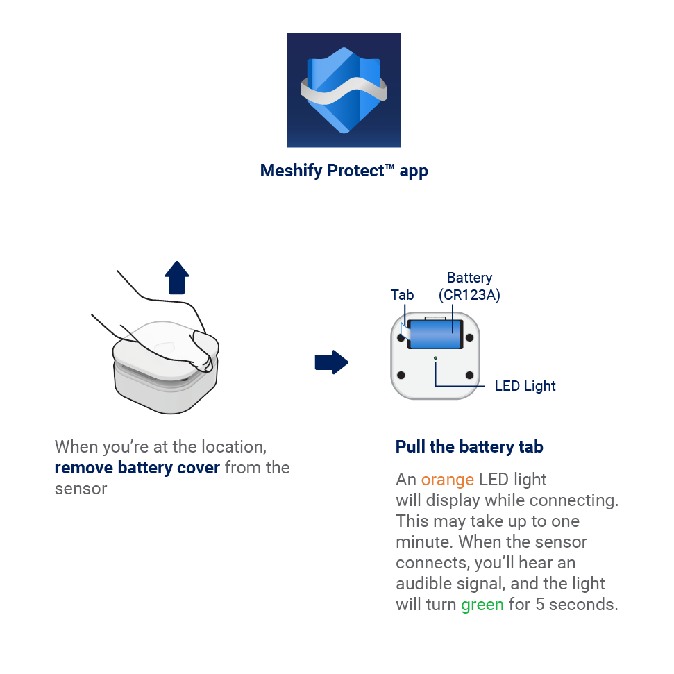 You will need to create your account and activate the sensors. Both steps are necessary to receive accurate alerts. Using the mobile app, Meshify Protect™, is the quickest way to activate your account.